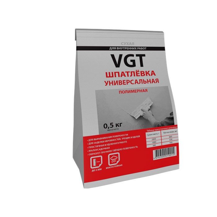 ШПАТЛЕВКА УНИВЕРСАЛЬНАЯ ДЛЯ ВНУТРЕННИХ РАБОТ ПОЛИМЕРНАЯ СУХАЯ 0,5КГ